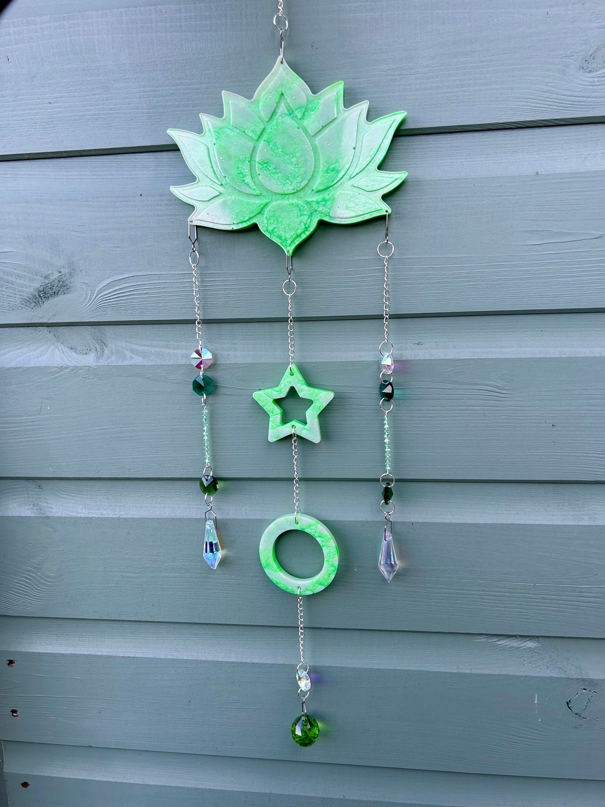 Meet Elowyn, one of my handmade epoxy resin & glass bead sun catchers!